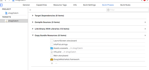 GoogleMobileAds.frameworkについても同様に「Link Binary With Libraries」にドラッグ&ドロップすると、なんとなくうまくいったような気がするのですが、そうすると「ViewController.swift」の「var bannerView: GADBannerView = GADBannerView()」のところで「No such module 'GoogleMobileAds'」というエラーが表示されてbuild failedになるんですよね。